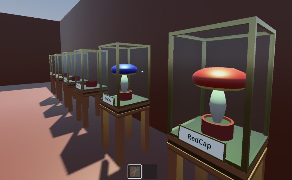 Added sound effects to the showcases and a light when the correct shroom is placed in it.
